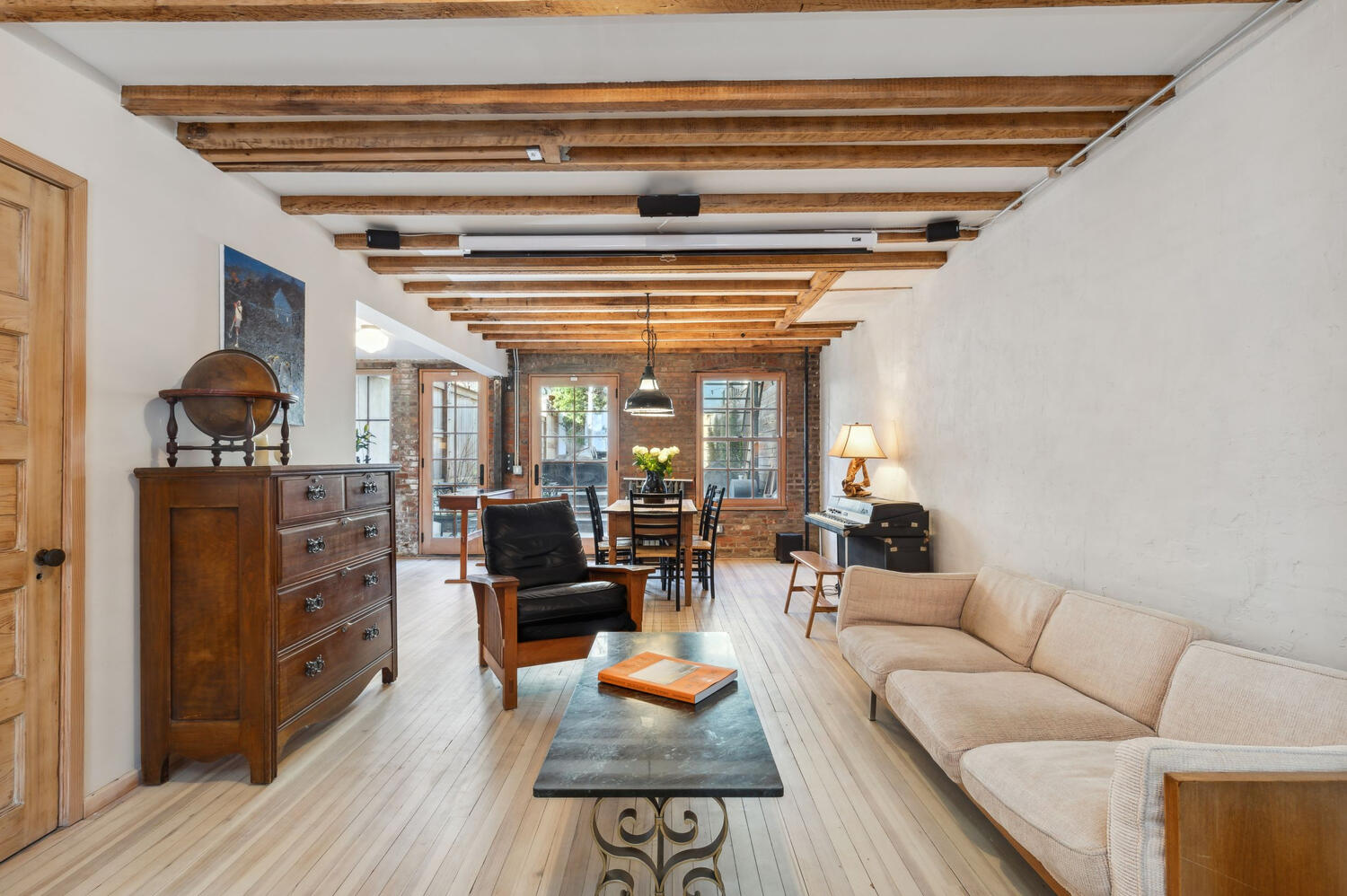 Designed by the fashion designer/owner in neutral shades to emphasize natural light and accented with wood beamed ceilings throughout, 29 Decatur Street is an artistic masterpiece that harkens to Bed-Stuy's elegant history, but is fully renovated down to the studs for modern living.